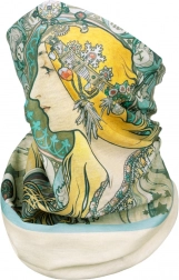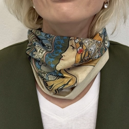Objavte elegantnú bandanu inšpirovanú ikonickou secesnou estetikou Alfonza Muchu. Motív Zodiak dodá vášmu outfitu umelecký a nadčasový charakter, zatiaľ čo ľahký polyester zaistí príjemné nosenie a jednoduchú údržbu.