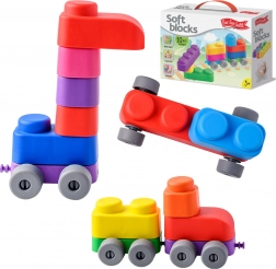 Far Far Land mäkké stavebnice pre malé deti ponúkajú bezpečnú a kreatívnu zábavu s desiatimi dielikmi a ôsmimi kolieskami. Táto stavebnica rozvíja kreativitu, motorické zručnosti a koordináciu ruka-oko. Vyrobené z mäkkého materiálu vhodného ako kúsadlo.