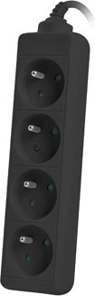 Predlžovacia lišta umožňuje pripojenie až štyroch zariadení naraz vďaka štyrom francúzskym zásuvkám CEE 7/5.