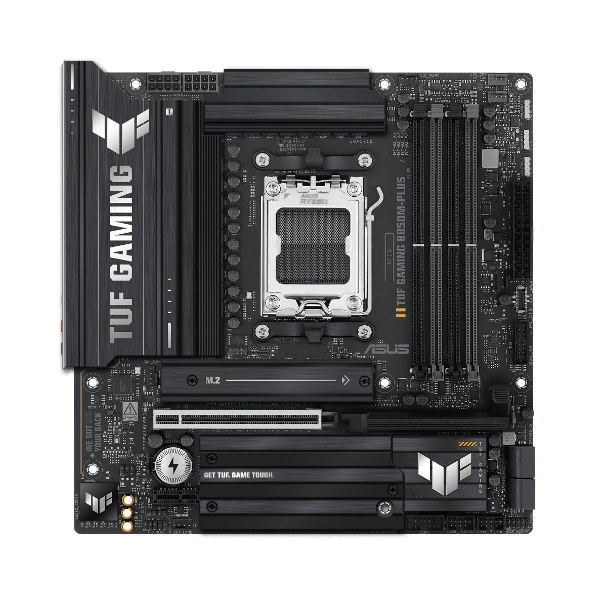 ASUS TUF GAMING B850M-PLUS spája robustnú konštrukciu s funkciami pripravenými na moderné hry a náročné aplikácie. Vďaka posilnenému napájaniu, masívnym pasívom a premyslenému rozloženiu je doska pripravená na stabilnú prevádzku s procesormi AMD Ryzen, a to aj pri dlhodobom zaťažení. Platforma poskytuje výkon a pripojenie, ktoré vyžadujú pokročilé pracovné postupy aj AI aplikácie.