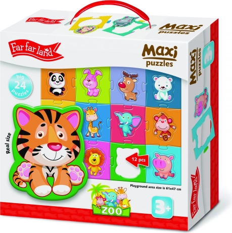 Maxi Puzzle Zvieratká zo ZOO ponúka deťom zábavnú a vzdelávaciu hru, ktorá rozvíja ich zručnosti a predstavivosť. Toto pestré puzzle obsahuje: