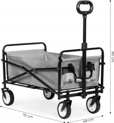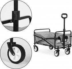 Tento šikovný vozík zjednoduší vašu prácu na záhrade a prepravu nákupov. Jeho funkcie ocenia tiež milovníci pláží. Pohodlná rukoväť, skladací dizajn a pevný kovový rám robia z tohto vozíka nepostrádateľného pomocníka.