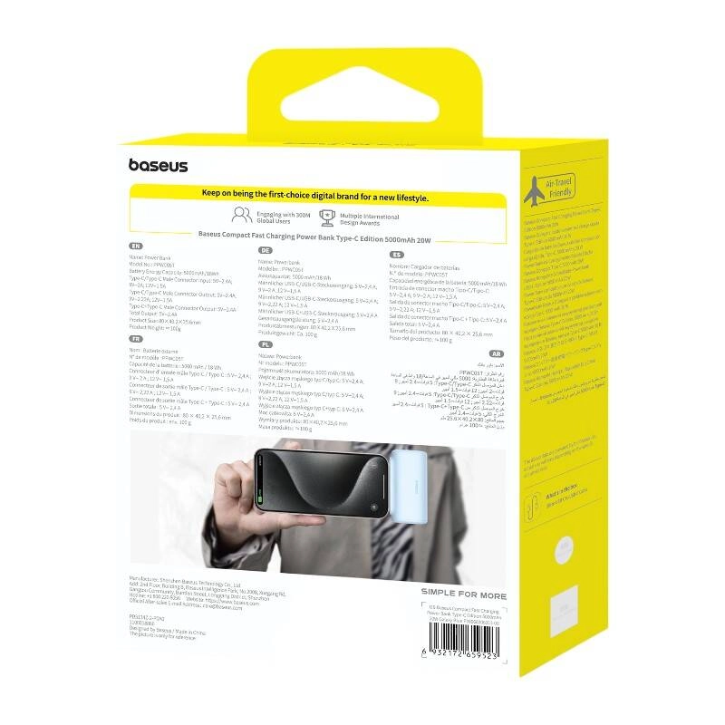 Baseus Kompaktná zaisťuje, že nabíjanie vašich zariadení nebude trvať príliš dlho. Poskytuje až 20 wattov výkonu, čo znamená, že svoj iPhone 15 nabíjete na 57 % za púhych 30 minút. Vďaka vstavanému konektoru USB-C sa powerbanka perfektne hodí k mnohým populárnym zariadeniam, nielen k smartfónom, ale aj k TWS slúchadlám alebo tabletom.