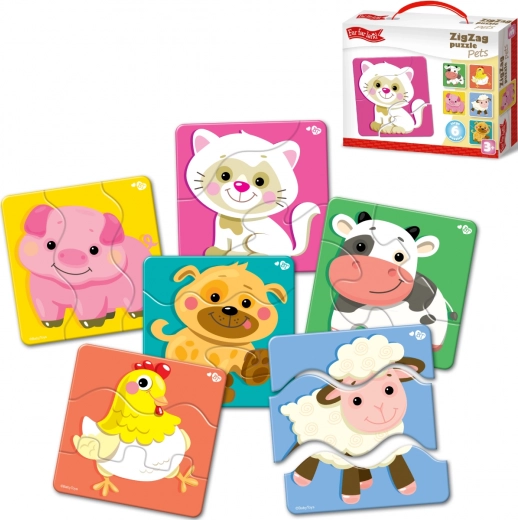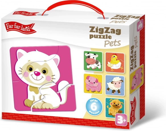 Puzzle ZigZag Mazlíčci od Far Far Land je hračka určená pre deti od 3 rokov, ktorá ponúka zábavu s domácimi zvieratkami v 6 rôznych obrázkoch. Farebné dizajny a špeciálne cikcakovité strihanie obohacujú zážitok z hrania.