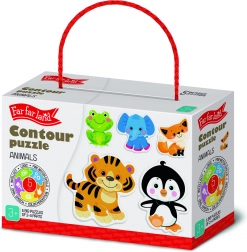 Far Far Land Puzzle zvieratká obrysové je balenie obsahujúce 5 zaujímavých puzzle obrázkov navrhnutých pre deti od 3 rokov. S pestrými farbami a unikátnym dizajnom ponúka viac než len obyčajnú skladačku.