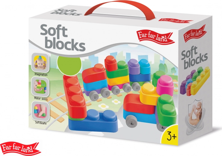 Stavebnica Far Far Land je zábavná a kreatívna hračka pre deti! Obsahuje 21 mäkkých blokov a 16 koliesok, ktoré podporujú rozvoj motoriky a predstavivosti u vašich detí.