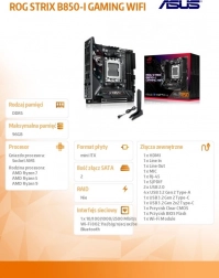 ROG STRIX B850-I GAMING WIFI spája najnovšie technológie do minimalistického formátu mini‑ITX. Vďaka podpore PCIe 5.0 pre grafické karty aj NVMe úložisko, rýchlym pamätiam DDR5 a výkonným napájacím kaskádam získate platformu pripravenú na moderné hry, tvorbu obsahu aj AI pracovné záťaže.