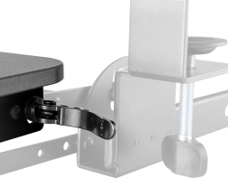 Držiak je vybavený nastaviteľnými svorkami pre jednoduché upevnenie pod doskou stola, čo umožňuje ľahké prispôsobenie a inštaláciu.