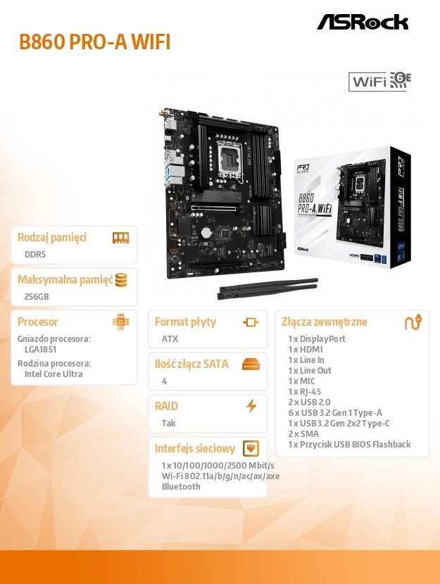ASRock B860 Pro-A WiFi je navrhnutá pre stabilitu, spoľahlivosť a dlhú životnosť. Vďaka kvalitnému návrhu napájania a podpore najnovších pamätí DDR5 ľahko získate vyšší výkon pomocou profilov Intel XMP / AMD EXPO bez zbytočných komplikácií.