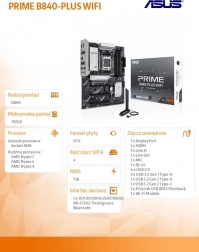 Asus Prime základná doska B840-PLUS WiFi je navrhnutá na maximálne využitie potenciálu procesorov AMD Ryzen série 9000. Táto základná doska poskytuje používateľom a nadšencom do stavby počítačov rôzne možnosti optimalizácie výkonu pomocou intuitívneho softvéru a firmvéru.