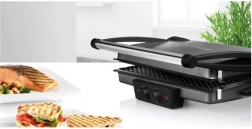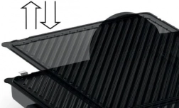 Zdravá kuchyňa, rýchla kuchyňa, chutná kuchyňa – tri polohy grilovania ponúkajú prakticky neobmedzené možnosti vyskúšať kreatívne nápady. Zatvorená poloha ako kontaktný gril, otvorená ako stolový gril, polo otvorená s horným a dolným ohrevom na pečenie, zapekanie alebo ohrievanie. Šťavnaté steaky, lahodné hamburgery, chrumkavé zlatohnedé špízy, toasty, panini, sendviče alebo focaccia – užite si to, čo máte radi. Navyše gril obsahuje obojstranné platne: s rebrovaným a hladkým povrchom, ktoré sú vďaka tomu mimoriadne vhodné na grilovanie s nízkym obsahom tuku.