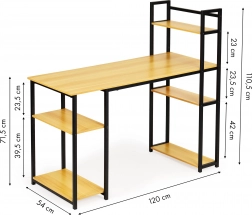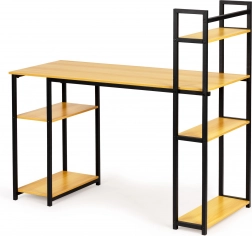 Písací stôl kombinuje moderný dizajn s praktickými prvkami. Veľká pracovná doska poskytuje dostatok miesta pre prácu, zatiaľ čo odolné laminované prevedenie zaisťuje dlhú životnosť a luxusný vzhľad. K dispozícii je šesť polic na strane stola pre efektívnu organizáciu pracovného priestoru.