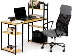Písací stôl vyniká kombináciou svetlého dubu a kovu, čo dodáva moderný a industriálny vzhľad vhodný do každej kancelárie či pracovne.
