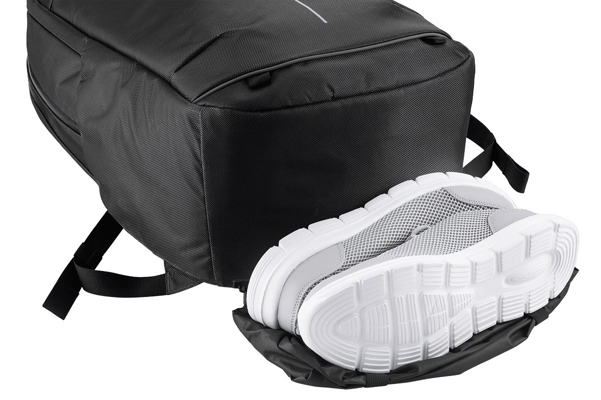 Praktické rozšíriteľné spodné vrecko je ideálne na topánky, špinavé či mokré prádlo. Objem ľahko upravíte horným zipsom z 26 na 30 litrov. Nechýba bočné vrecko na fľašu, magnetické zapínanie, reflexné prvky pre viditeľnosť a možnosť upevnenia na teleskopickú rukoväť kufra.