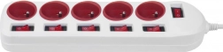 Táto robustná napájacia lišta ponúka päť plnohodnotných zásuviek s nezávislými kolískovými vypínačmi, ktoré umožňujú vypínať konkrétne zariadenia bez nutnosti odpájania zástrčiek. Praktická konštrukcia v kombinácii s prehľadnými červenými prvkami uľahčuje každodenné používanie.