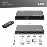 Elegantný a kompaktný prepínač DIGITUS 3×1 HDMI umožní pripojiť až tri HDMI zdroje k jednému displeju. Ideálne pre TV na stene, herné konzoly, prehrávače či počítače – stačí jediný HDMI kábel k obrazovke a medzi zdrojmi prepínate na diaľku.