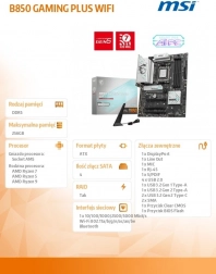 Základná doska B850 GAMING PLUS WIFI prináša špičkový výkon pre hráčov aj tvorcov: Wi‑Fi 7, 5G LAN, PCIe 5.0, bleskové M.2 Gen5 a odolné napájanie 12+2+1 pre stabilitu pri pretaktovaní. Optimalizovaná pre AMD Ryzen 9000/8000/7000, ponúka jednoduchú montáž s EZ DIY a kvalitný zvuk Audio Boost.