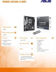 Základná doska PRIME H810M-A WiFi je ideálnou voľbou pre každu mATX skriňu vďaka svojim rozmerom 24,4 x 22,2 cm, čo zaručuje optimálne využitie priestoru. Kľúčovým prvkom je socket LGA1851, ktorý podporuje procesory rodiny Intel Core Ultra, čo vám umožní vychutnať si mimoriadnu silu a rýchlosť vášho počítača.