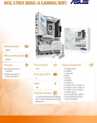 Základná doska Asus ROG Strix B860-A Gaming WiFi je navrhnutá pre tých, ktorí hľadajú výkonnosť a stabilitu. Vďaka podpore procesorov Intel Core Ultra a pätice LGA1851 poskytuje neprekonateľný výkon aj pri najnáročnejších úlohách.