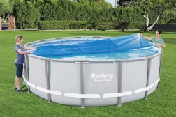 Solárny kryt na bazén BESTWAY je praktické príslušenstvo, ktoré zvyšuje komfort kúpanía a znižuje náklady na údržbu. Bublinová štruktúra využíva slnečnú energiu na ohrev vody a zároveň minimalizuje tepelné straty. Vďaka presnému kruhovému tvaru skvele sadne na bazény s priemerom 4,62 m.