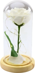 Večná biela ruža v sklenenej kupole s LED osvetlením
