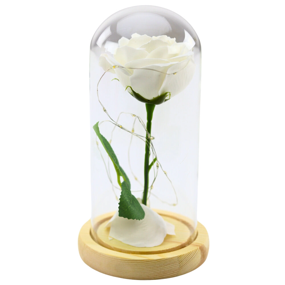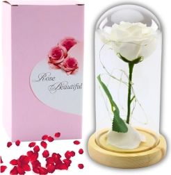 Večná biela ruža v sklenenej kupole s LED osvetlením je ideálnym darčekom pre tých, ktorí oceňujú eleganciu a symboliku. Táto umelá ruža, ktorá dokonale imituje prírodný kvet, nikdy nezvädne a vždy vyzerá sviežo. Uzavretá pod sklenenou kupolou a osvetlená jemným LED svetlom, vytvára romantickú atmosféru ideálnu pre výnimočné chvíle.
