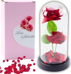 Večné ruže v kupole s LED osvetlením a lupeňmi ruží - červené sú elegantným a symbolickým darčekom, ktorý vyjadrí vaše city a dodá jedinečný charakter každému interiéru. Vo vnútri kupoly sa nachádzajú dve umelé ruže a lupene, ktoré v kombinácii s jemným LED osvetlením vytvárajú jedinečnú atmosféru vhodnú pre romantické príležitosti.