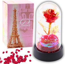 Večná krištáľová ruža pod kupolou s LED osvetlením je elegantný a symbolický dar, ktorý vyjadrí tie najhlbšie city a pridá výnimočný charakter každému interiéru. Pod vplyvom jemného LED svetla vytvára magickú atmosféru, ideálnu pre romantické príležitosti.