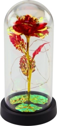 Večná krištáľová ruža v sklenenej kupole s LED osvetlením je štýlový a symbolický darček, ktorý vyjadruje vaše pocity a pridá špeciálny nádych každému interiéru. Jej trblietavé farby vytvárané jemným LED svetlom prinášajú jedinečnú atmosféru, vhodnú pre romantické príležitosti.