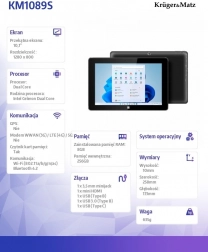 Tablet Krüger & Matz EDGE 1089 je ideálne zariadenie pre každodenné používanie. Jeho dvojjadrový procesor Intel Celeron N4020 s frekvenciou až 2,8 GHz zabezpečuje hladký chod rôznych aplikácií. S 4 GB operačnou pamäťou a 128 GB interným úložiskom máte dostatok priestoru pre svoje súbory a aplikácie.