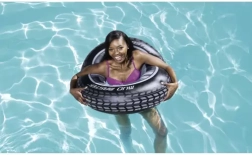 Kruh má verný vzhľad automobilovej pneumatiky, ktorý zaujme deti aj dospelých a pridáva zábavný prvok do každého bazéna.