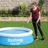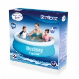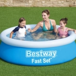 Nafukovací bazén Bestway Fast Set s priemerom 183 cm a výškou 51 cm je praktickým a ekonomickým riešením pre domáce použitie. Vyrobený je z odolného materiálu DuraPlus™, ktorý zaisťuje trvanlivosť, odolnosť voči UV žiareniu a mechanickému poškodeniu. Ľahko ho umiestnite na trávu alebo tvrdý, rovnú plochu.