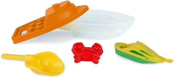 Táto pestrá plastová loďka je nevyhnutným doplnkom pre každé dieťa, ktoré sa rado hrá na pláži. Sada obsahuje aj rôzne formičky a nádoby, ktoré umožňujú tvorenie v piesku a vode.