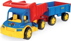 Toto obrovské nákladné auto s prívesom je ideálne pre všetkých malých milovníkov nákladných áut. Veľká a pevná konštrukcia poskytuje odolnosť a zábavu na dlhé roky. Vďaka pripojiteľnému závesu, deti môžu auto ľahko ťahať a používať ho na prepravu hračiek alebo iných predmetov. Zábava a učenie v jednom, nákladné auto stimuluje detskú predstavivosť, zlepšuje manuálnu zručnosť a podporuje koordináciu oko-ruka. Výborne sa hodí pre hranie doma aj vonku.