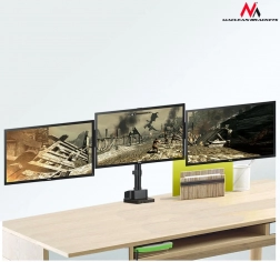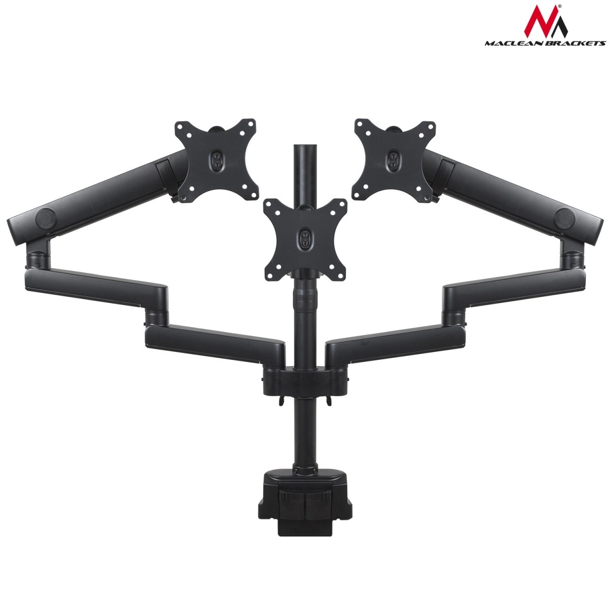 Tento profesionálny držiak pre tri monitory je navrhnutý pre moderné pracovné stanice v kancelárii aj doma. Umožňuje plynulé nastavenie náklonu, natočenia aj výšky, takže ľahko dosiahnete ideálny uhol pohľadu, znížite únavu očí a podporíte správne držanie tela. Robustná konštrukcia z hliníka zaručuje stabilitu a dlhú životnosť.