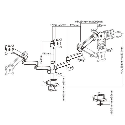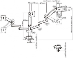 Univerzálny stolový držiak na tri monitory poskytuje maximálnu ergonómiu a pohodlie pri práci. Vďaka nastaviteľnému náklonu, otočeniu a výškovému nastaveniu ľahko prispôsobíte polohu obrazoviek svojim potrebám. Odolné hliníkové ramená a pevná svorka umožňujú montáž k doske stola alebo do priechodky, bez vŕtania do nábytku. Súčasťou sú integrované USB 3.0 porty na rýchle pripojenie a nabíjanie zariadení.