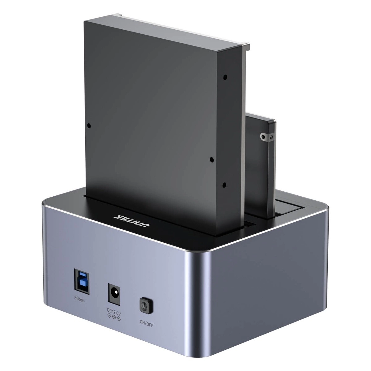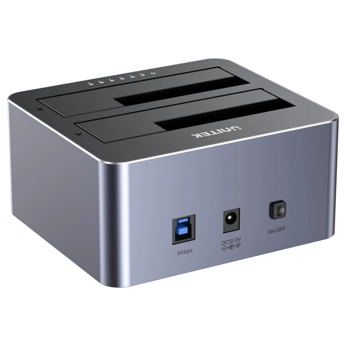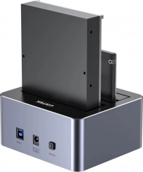 Vďaka USB 3.0 (5 Gbps), podpore UASP a TRIM získate maximálnu rýchlosť a stabilitu: až 485 MB/s disk→disk a cca 405 MB/s disk→počítač. Hliníkové telo efektívne odvádza teplo, LED diódy zobrazujú stav napájania aj postup klonovania a po 30 minútach nečinnosti sa zariadenie automaticky uspí.