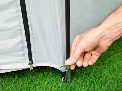 Sklolaminátové tyče, napínacie šnúry a kolíky umožnia zostavenie približne za 30 minút. Praktická taška uľahčí prenášanie aj skladovanie.