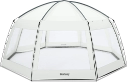 Užite si kúpanie aj oddych bez obmedzení počasím. Stabilná konštrukcia z prútov zo sklolaminátu nesie dvojitú plachtu z 190T polyesteru s PU povlakom 2000 mm a UV ochranou UPF 50+. Priehľadné PVC okná prinášajú dostatok svetla, dve vstupné zóny a sieťovina proti hmyzu zas pohodlný prístup a pokojný chod okolo bazéna.