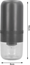 Priehľadná nádoba s objemom 150 ml umožňuje kontrolu nad výsledkom, zatiaľ čo ovládanie jedným tlačidlom zaručuje intuitívne používanie. Vďaka kompaktným rozmerom sa mlynček hodí do každej kuchyne a skvele poslúži aj na cestách – stačí pripojiť k notebooku, powerbanke či nabíjačke.