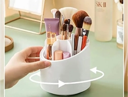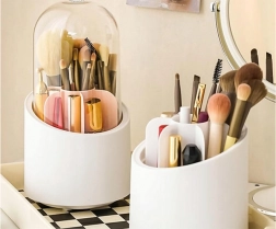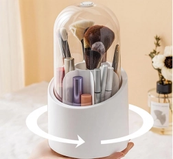 Udržujte svoj toaletný stolík dokonale usporiadaný. Tento kompaktný organizér ponúka otočný podstavec 360°, priehľadné veko proti prachu a 7 priehradiek na štetce, rúže aj drobnosti. Odolný plast a minimalistický dizajn krásne zapadnú do každej kúpeľne či spálne.