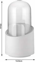 Veko v tvare domčeka chráni kozmetiku pred nečistotami a zároveň umožňuje prehľad o obsahu.