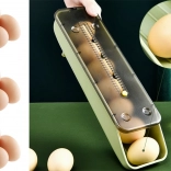 Žiadne nestabilné krabičky a rozbité vajcia. Tento chytrý zásobník na vajcia s posuvným vekom udržiava vajíčka bezpečne na mieste a vďaka sklonu sa po vybratí jedného kusu ďalšie automaticky presunie dopredu. Integrovaný posuvník dátumu vám pomôže označiť deň vloženia alebo spotreby, takže máte čerstvosť vždy pod kontrolou.