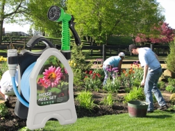 Praktický stojan s háčikom šetrí miesto, uľahčuje prenášanie a umožňuje rýchle navinutie hadice bez uzlov.