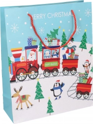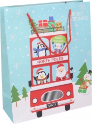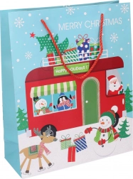 Štýlová vianočná darčeková taška v strednej veľkosti na jednoduché a elegantné zabalenie darčekov. Kvalitný papier, pevné ušká a štyri sviatočné motívy dodajú vašim darčekom čaro Vianoc.
