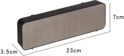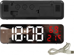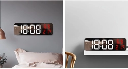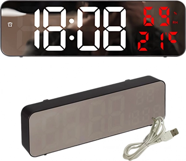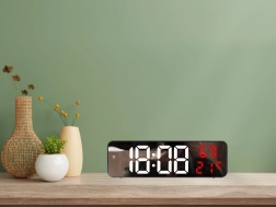 Tieto digitálne hodiny majú multifunkčné vlastnosti. Zobrazujú čas, dátum, teplotu v stupňoch Celzia alebo Fahrenheita, úroveň vlhkosti a dokonca slúžia ako budík s funkciou odloženia. Vďaka zrkadlovému povrchu pôsobia aj ako dekoratívny prvok v každom interiéri.