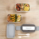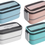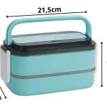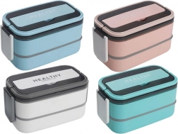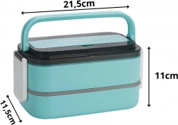Praktický dvojposchodový bento box s objemom 1400 ml pre pohodlné a zdravé stravovanie na cestách. Vďaka vzduchotesnému uzáveru, priečkam a bezpečným bočným klipom udrží vaše jedlo čerstvé a oddelené. Ideálny do práce, školy, na univerzitu aj piknik, súčasťou sú praktické príbory a box je možné ohrievať v mikrovlnnej rúre.