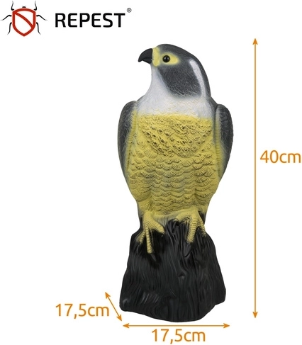 Realistická maketa sokola je účinným a bezpečným riešením na ochranu vonkajších aj vnútorných priestorov. Prirodzený vzhľad predátora posilňuje inštinktívny strach drobných vtákov a pomáha chrániť úrodu, fasády či balkóny bez chémie a hluku. Vhodné tiež ako vizuálny plašič pre drobné hlodavce.