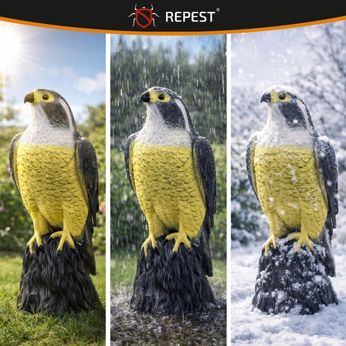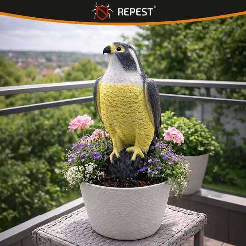Realistický odpudzovač vtákov v tvare sokola účinne chráni balkóny, terasy a záhrady. Vďaka detailnému spracovaniu a prirodzenému sfarbeniu pôsobí ako prirodzený predátor a spoľahlivo odrádza holuby, špačkov, vrabce, kavky aj čajky. Je odolný voči UV žiareniu a poveternostným vplyvom, možno ho zaťažiť pieskom pre vyššiu stabilitu a ľahko premiestniť podľa potreby.