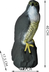 Táto realistická maketa sokola je ideálna na odstrašenie vtákov, ako sú holuby, škorce alebo vrabce. Vyrobená z odolného plastu, ktorý odolá slnečnému žiareniu, vlhkosti, dažďu a mrazu, je vhodná na celoročné použitie vonku aj vnútri.